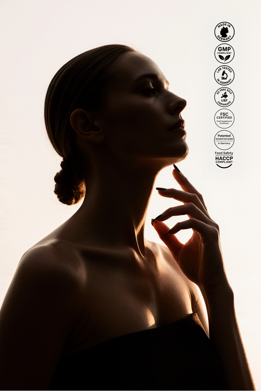 Ergebnisse können individuell variieren. Für Kollagen und Hyaluronsäure gibt es keine von der EFSA zugelassenen gesundheitsbezogenen Angaben. Zulässige EFSA-Aussagen, die oben verwendet werden, sind wörtlich wiedergegeben.Überschreiten Sie nicht die empfohlene tägliche Verzehrsmenge. Nahrungsergänzungsmittel sind kein Ersatz für eine abwechslungsreiche und ausgewogene Ernährung und eine gesunde Lebensweise.