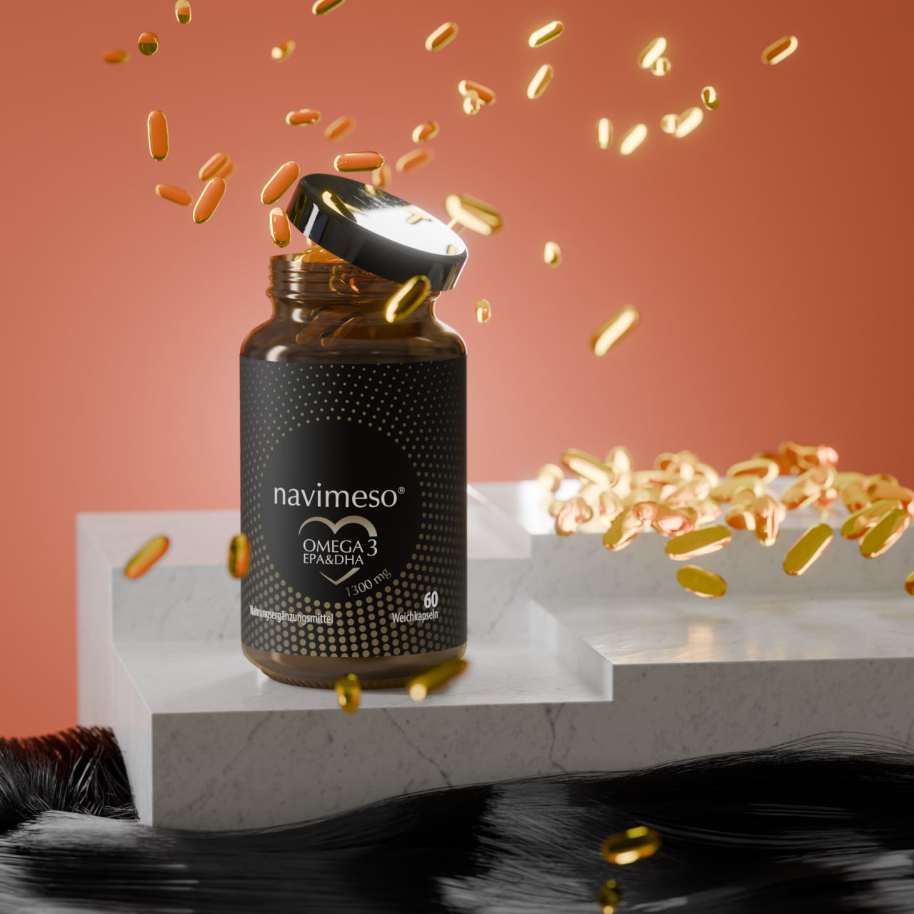NAVIMESO® Omega 3 EPA & DHA ist für Erwachsene über 18 Jahre gedacht, die die Gesundheit von Herz, Gehirn und Augen durch eine konsequente Aufnahme von Omega-3-Fettsäuren unterstützen möchten.