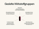 60 capsules with vitamins, minerals and hyaluronic acid – supports normal collagen formation as well as skin, hair and nail function.