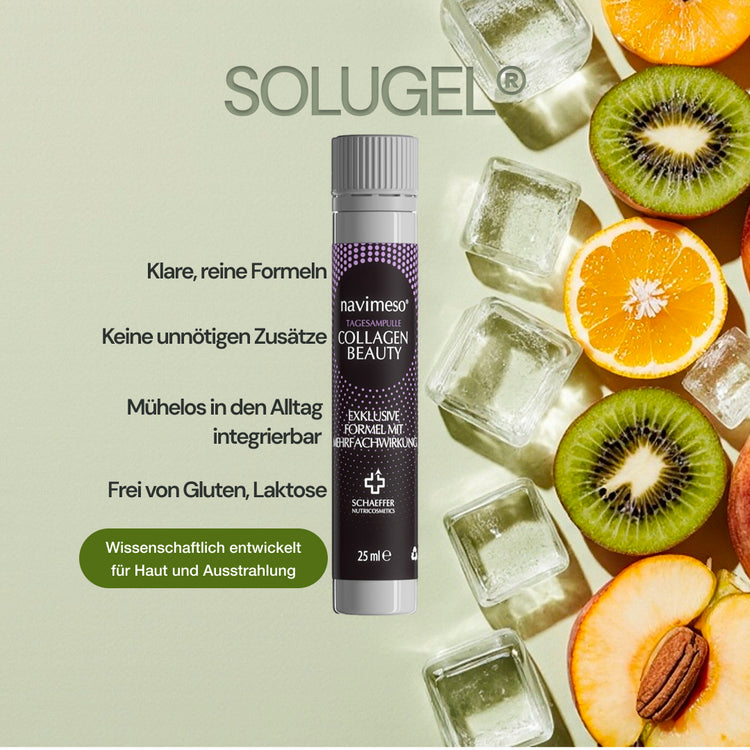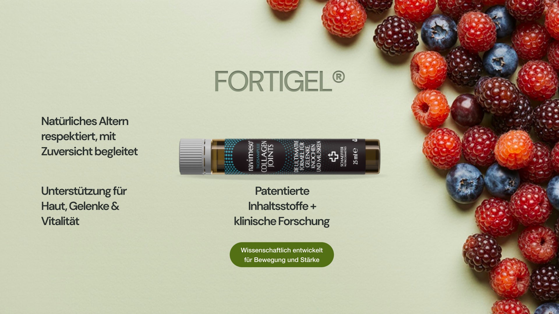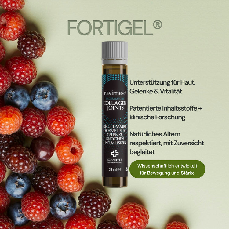 Kollagenpeptide mit klinischem Hintergrund. FORTIGEL® und SOLUGEL® erscheinen in über 20 Publikationen mit mehr als 2.500 Teilnehmenden. Typische Protokolle nutzen 2,5 bis 10 g pro Tag über 8 bis 24, teils 48 Wochen. Berichtet wurden Kennwerte zum Gelenkkomfort und MRT-Marker für Knorpel bei FORTIGEL®. Für SOLUGEL® wurden Veränderungen der Hautfeuchtigkeit, Elastizität und Festigkeit berichtet.